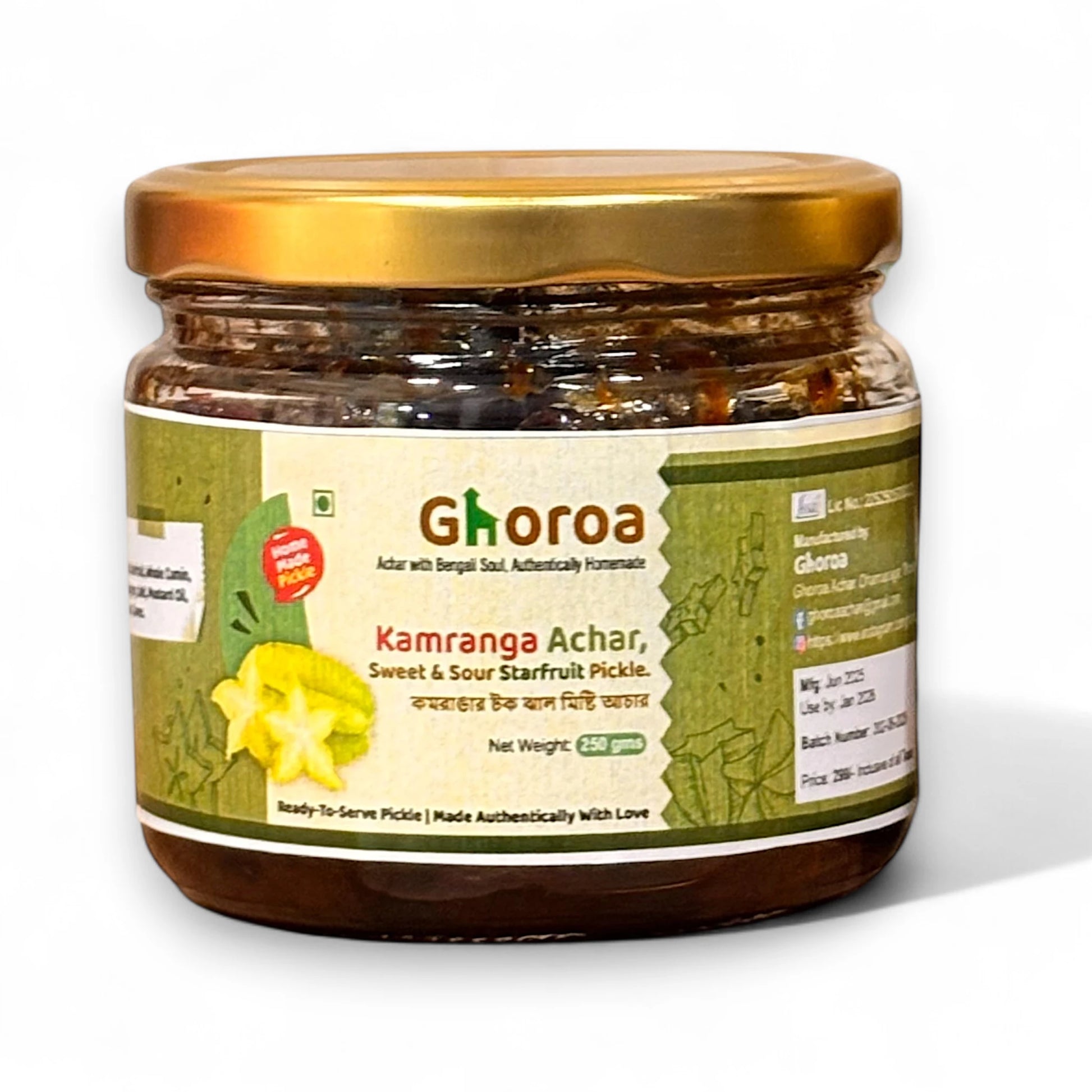 Kamranga Achar - Authentic Homemade Sweet & Sour Bengali Starfruit Pickle | Kamrakh ka Achar | Ghoroa Bengali Starfruit Pickle | 250g